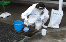 (2)汚染水を作業用のバケツ(30~100L容量)に入れ汚染水を回収する。